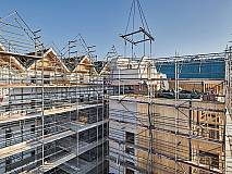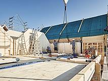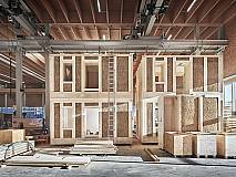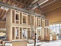 The development consists of 68 wooden modules which were prefabricated in our factory. Located on the former Bombasei factory site, the project is Switzerland's first major housing project made of prefabricated wooden modules filled with straw insulation (straw performs as well as rock wool). In addition to the timber, a total of 420 tons of straw were used.